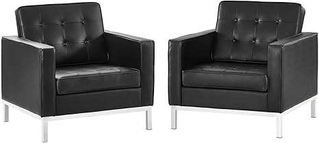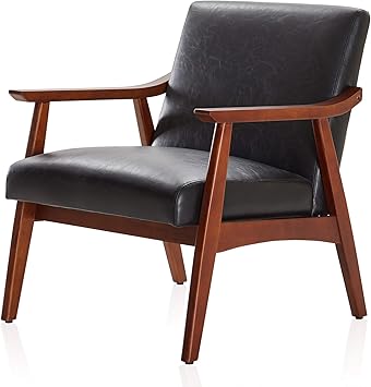 Browse our wide selection of mid century & modern chairs to bring effortless style to your home with beautiful furniture & decor. Black faux leather upholstery with panel material: Upgrade your living room style with our modern accent and armchairs. A vintage lounge chair with walnut frame and black and white plaid upholstery. Conrad mid century modern arm chair in black faux leather.